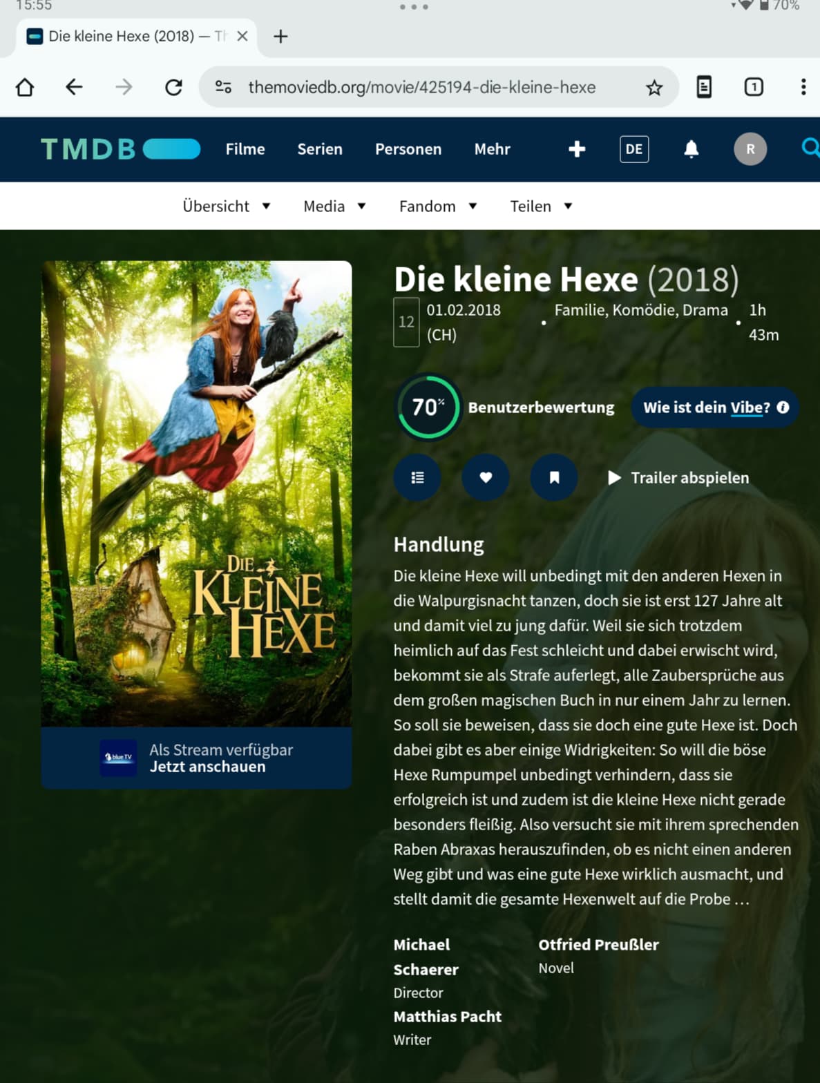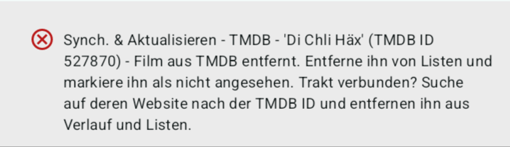 In SeriesGuide, unter Filme unter Merkliste, Sammlung oder Angesehen suche manuell nach dem Titel “Di Chli Häx” (am Besten vorher nach Titel sortieren) und entferne den Film dann bzw. markiere ihn als nicht angesehen.