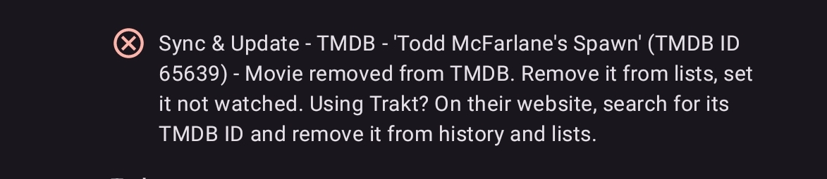 As the message states this movie has been removed from TMDB and can no longer be updated (or added again). Either this was never a movie (maybe look for a TV show then) or there is another movie entry in the database that replaces it.